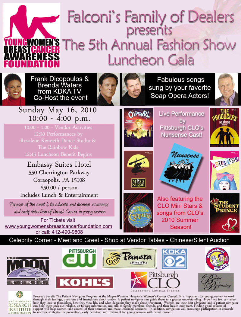 Pre-Show, Fashion Show Luncheon Gala including Civic light Opera - performing their Spring/Summer Series shows on stage, musical Performances, fashion show, fabulous Speakers from local hospitals and survivors.